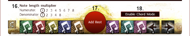 - Clicking the "Add Rest" button will make the instrument play nothing for the duration of the rest. Rests are considered to be in the current octave when they are added.